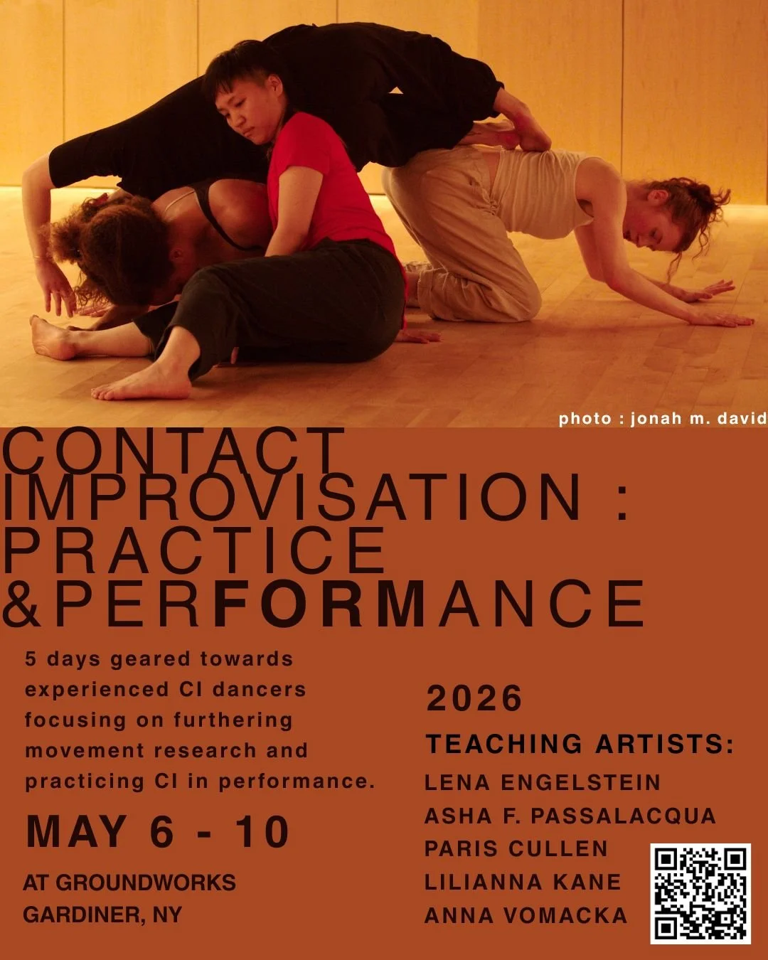 5 days geared towards experienced CI dancers focusing on furthering movement research and practicing CI in performance. The weekend will consist of classes, labs, compositional scores, and structured witnessing.